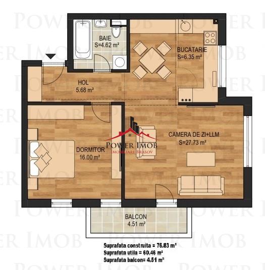 VANZARE apartament cu 2 camere in Tractorul la 500 m de Coresi Mall, disponibil la etajul 3/10, suprafata utila de 60,46 mp, plus balcon de 4,51 mp, compus din: 2 camere, bucatarie, grup sanitar cu cada, hol si balcon.
