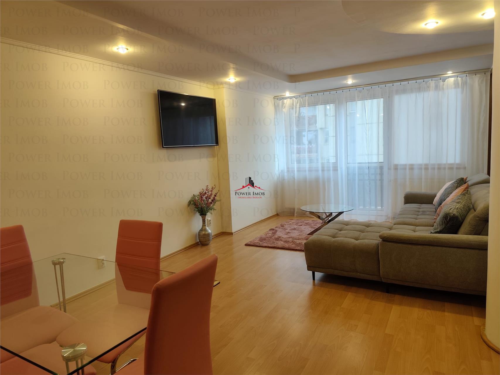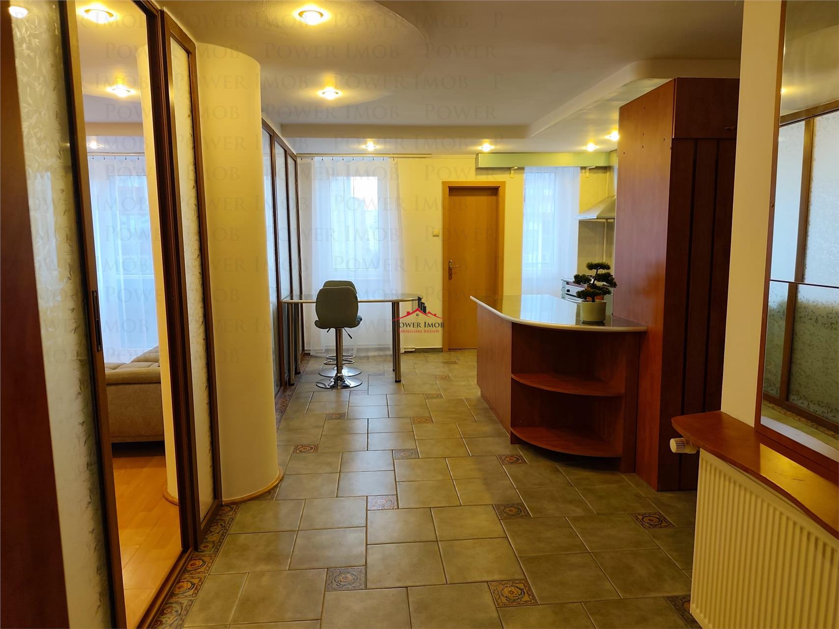 Este complet mobilat si utilat, compus din: living cu bucatarie open space, 2 dormitoare, baie, wc serviciu, hol, balcon.